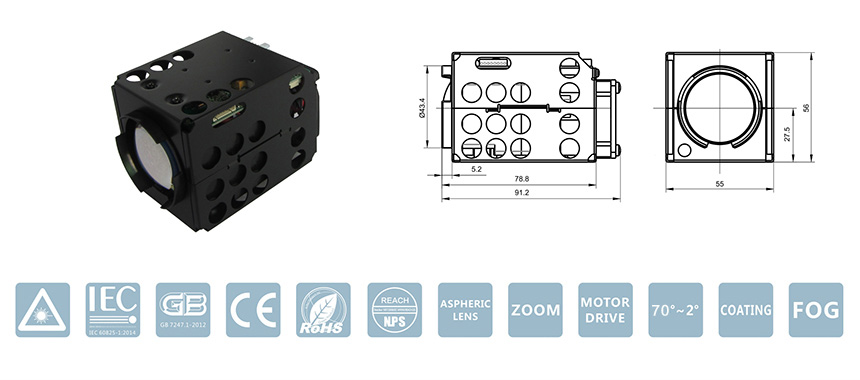 Illumination angle | Electric synchronous zoom, 70°~2°continuous adjustable |