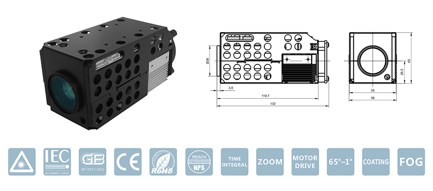 Illumination angle | Electric synchronous zoom,65°~1°continuous adjustable |