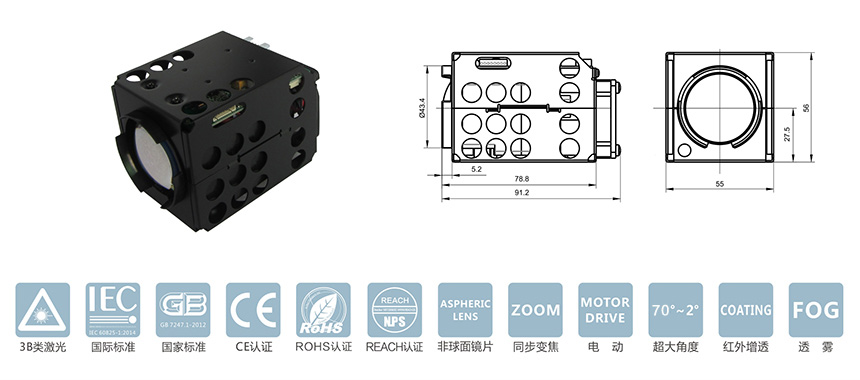 照明角度 | 電動同步變焦70°~2°連續(xù)可調(diào) |