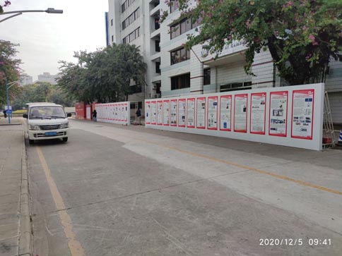 廣州學(xué)校背景板搭建,特別效果找卡藍(lán)專業(yè)制作,本項(xiàng)目位于廣州五山路和中山大道對(duì)面是暨南大學(xué)的,廣州華南師范大學(xué)校區(qū)里面安裝;總共有8個(gè)背景板,其中有特別設(shè)計(jì)制作效果;我們五個(gè)人從中午2點(diǎn)多到,安裝到晚上9點(diǎn)多,因?yàn)橛幸恍┘夹g(shù)問(wèn)題讓事情做得慢了;(燈布的打扣在畫(huà)面,要將扣翻出來(lái),然后再安裝)如下圖: